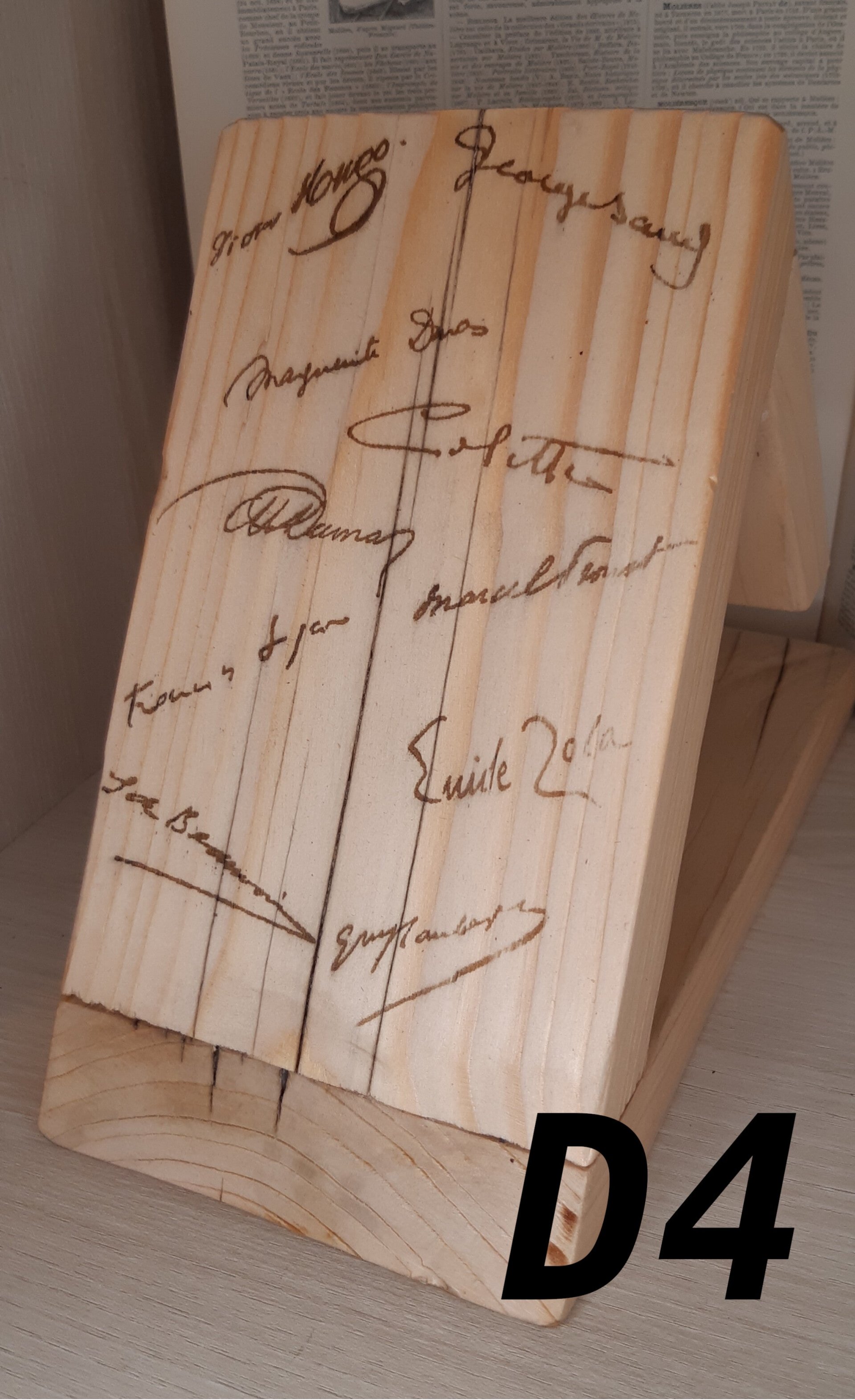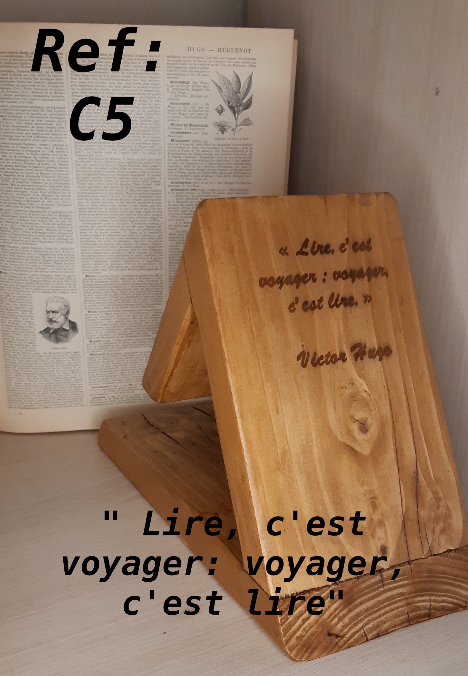 Ces bois locaux riches d'une histoire et façonnés à la main, avec leur mise en forme originale mettront en valeur vos lectures et votre intérieur.